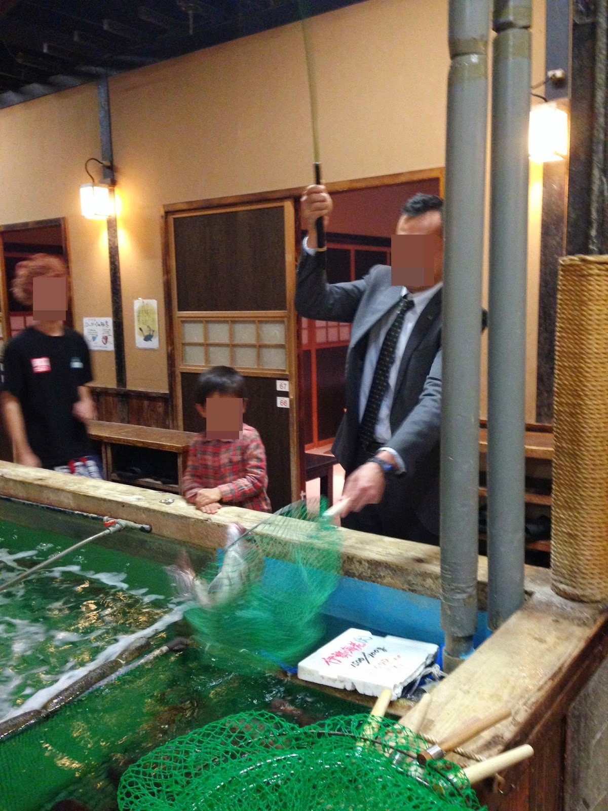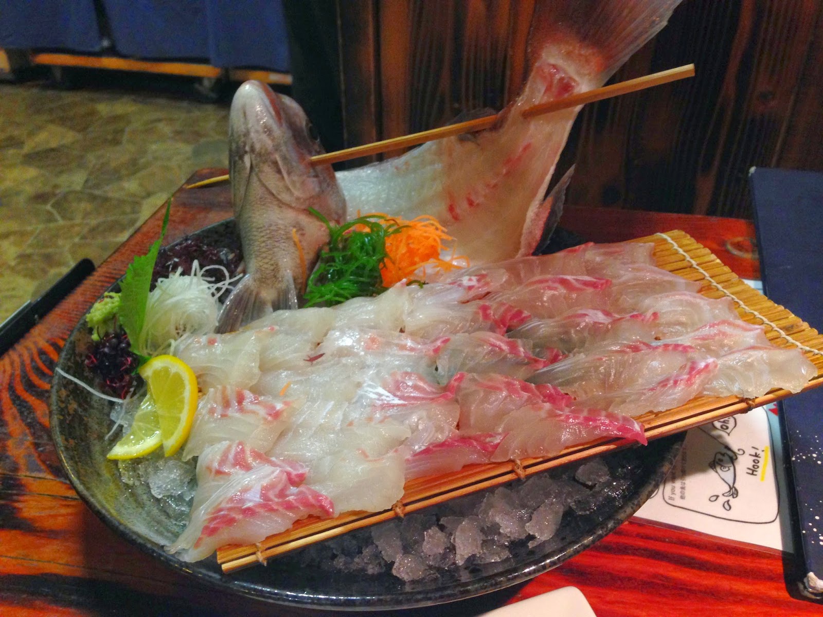 เนื่องจากแค่อยากรับรู้ประสบการณ์ในร้าน อีกทั้งเอาเข้าจริงซาซิมิปลาอันนี้ก็ไม่ได้อร่อยเลิศเลอขนาดนั้น (แพงด้วยนะ จานนี้ 2,000 กว่าเยน) ผมเลยสั่งแค่จานเดียวแล้วจบ จากนั้นก็สนุกกับการดูลูกค้าท่านอื่นตกปลากันไป