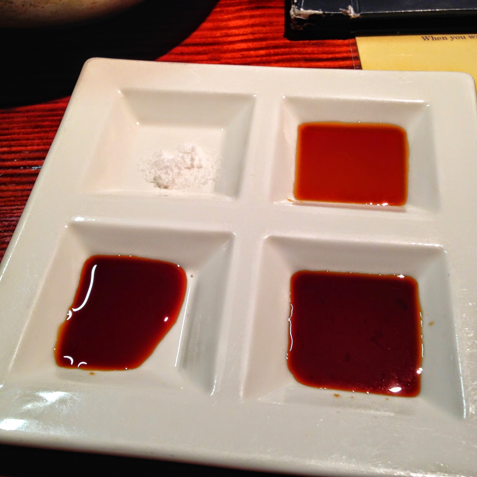 ที่ร้านมีซอสให้เลือกหลายแบบดี เป็นโชยุหลายสูตร